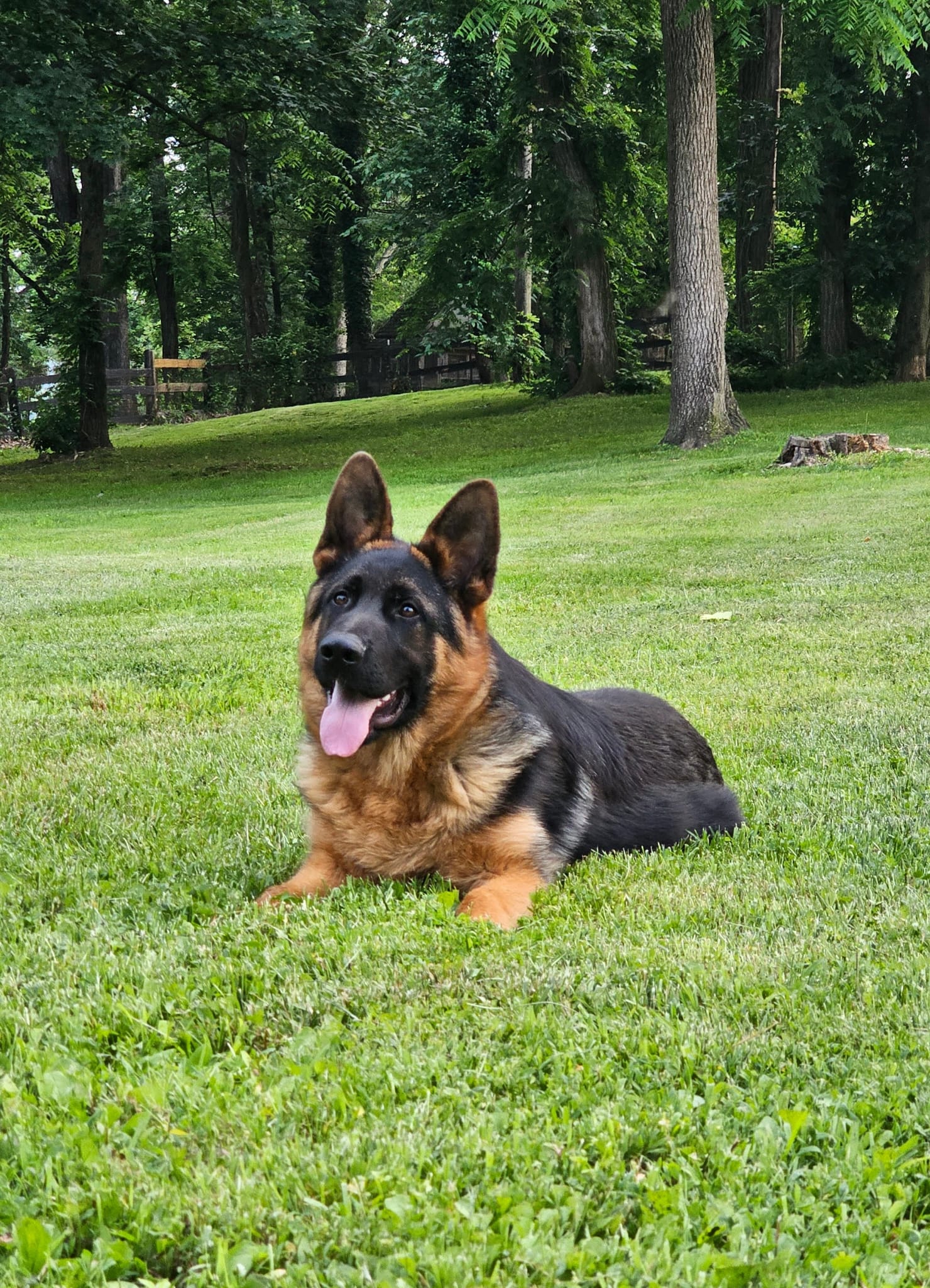 The father of Boots is a male named Himmat Von Nummer-Eins. Better known here as “Hemi”, we have chosen to use Hemi multiple times with our girls because of the genetics that he brings to the table. Personality, character, structure, color and overall style, Hemi is a winning male that brings a structural balance and consistency to our bloodline. Still not convinced? Check out the bloodlines and pictures, they speak for themselves.