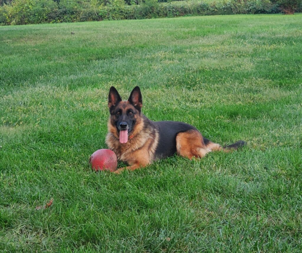 Jersey is a gorgeous female with great structure and full of life. Jersey is currently in training and is showing great progress. She has intense focus and is very eager to please. We are looking forward to seeing how she does.