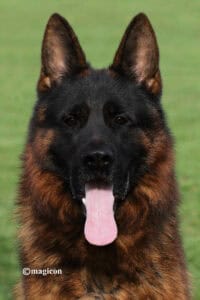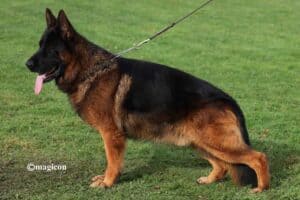 Tormund’s mother, Psky zum Kolbenguß, is a feminine yet powerful female with both structural correctness and working capability. She is V-rated in the show ring and holds IGP1 and BH titles. Psky is a female who has earned praise not only through her accomplishments but through the strength of her presentation.