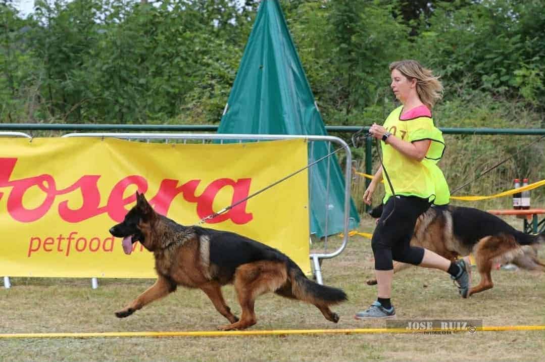 “Medium-sized, medium-strong, substantial, elongated, very expressive, and very well-pigmented female. Very well-shaped head with excellent mask and dark eyes. High pronounced withers, firm back, harmonious topline and underline, and a very well-set croup. Very good angulation of the fore and hindquarters, straight front and gait, free and efficient movement with excellent presentation. Pronounced TSB.”